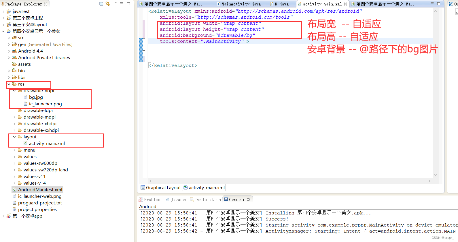 android:background="@drawable/girl" 布局背景为grawable下的girl图片