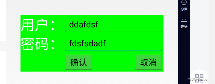 <!-- 在这个页面中创建字符串 id位置 宽 高 大小 在kuang2下面 按键1左边 passwd右边内容 -->