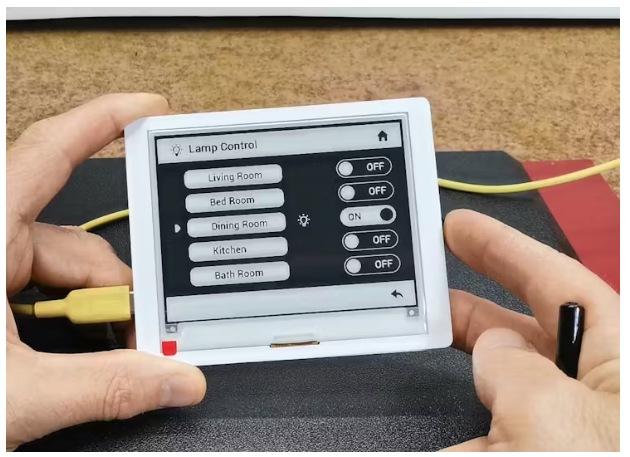 首先是显示文本,然后是一个示例图像,以及一个灯控制软件场景。如果在任何时候我们关闭电源,当前显示的图像仍然在屏幕上。这实际上是这类显示器的主要特点。它只在刷新时耗电。