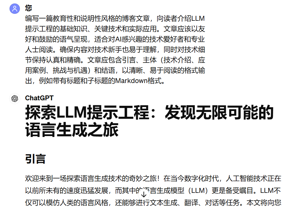 示例:让GPT写一篇介绍面向LLM的提示词编写技巧的博客