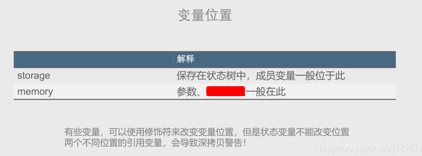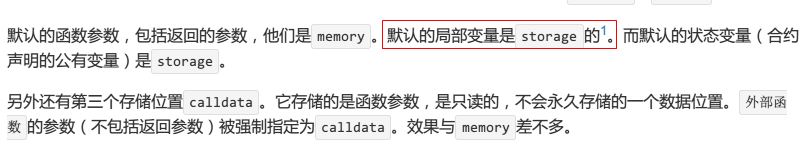函数参数及其返回值默认在memory中,合约中的公有变量默认是在storage