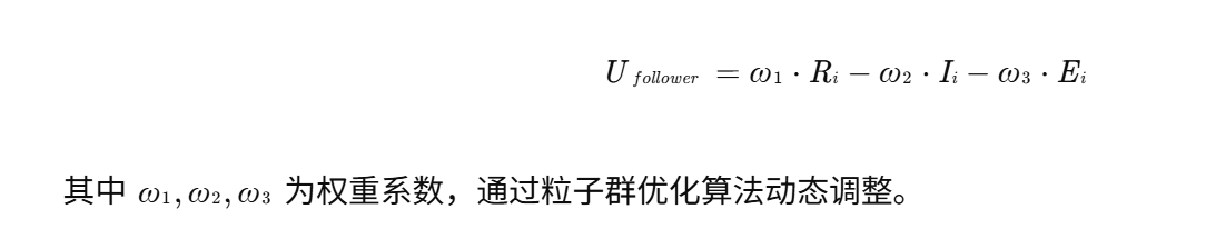 - 追随者响应计算:观测领导者策略后,计算最优信道选择以最大化个体效用。