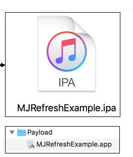 他这个其实就是包含我们项目中的资源和我们写的代码,我们要学习逆向那么其实就是对这个.app里面的内容进行破解。我们这个.app创建一个Payload文件夹然后在进行压缩之后就是我们的ipa包,那么这个ipa的包就可以安装到手机上了。