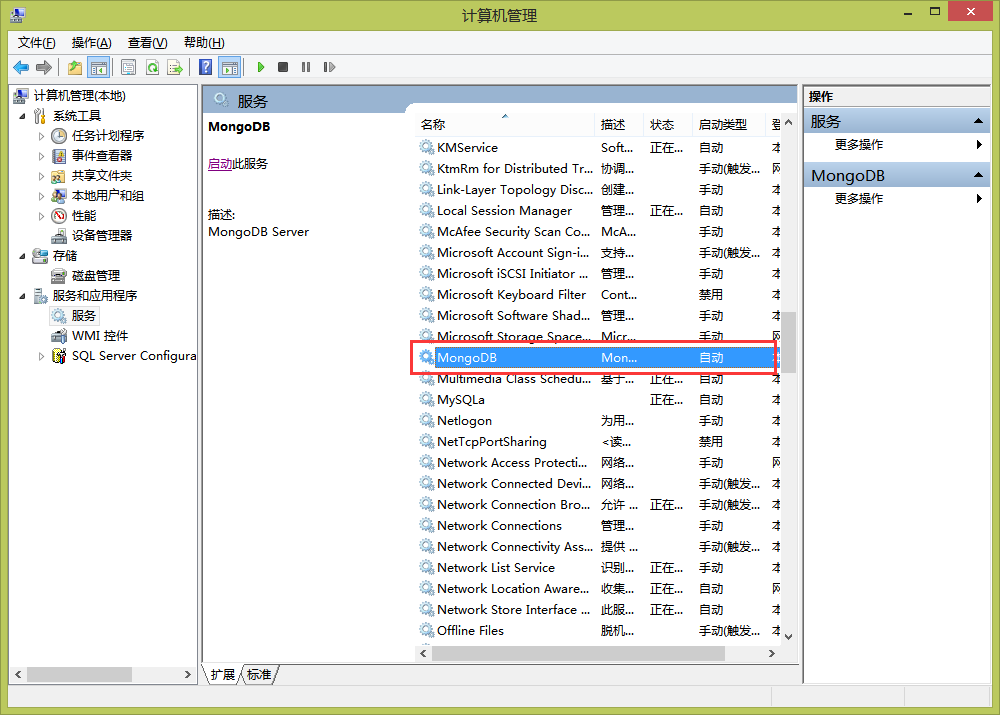 打开windows服务你会发现多了一个MongoDB的服务在里面