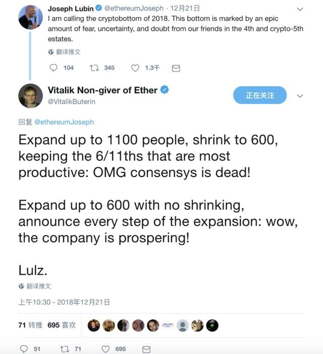 近日,V神就 ConsenSys 大规模裁员一事进行了观点分享。