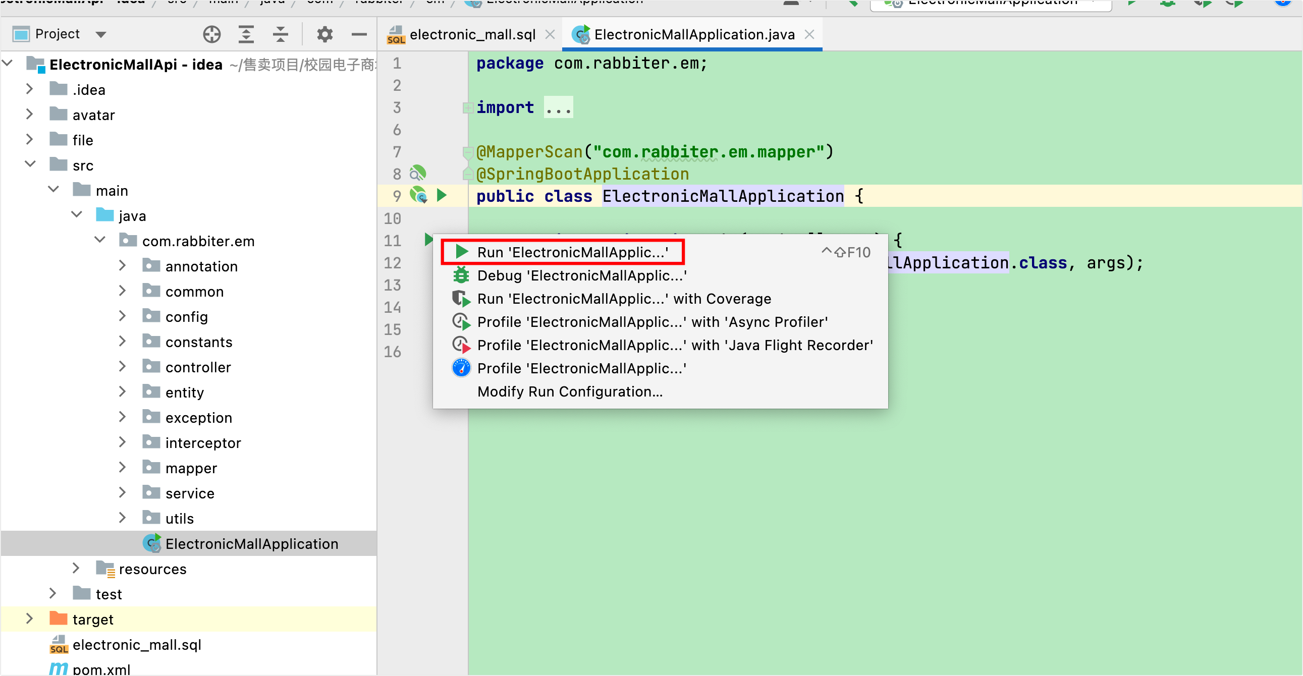 1.使用idea打开 ElectronicMallApi - idea 项目
