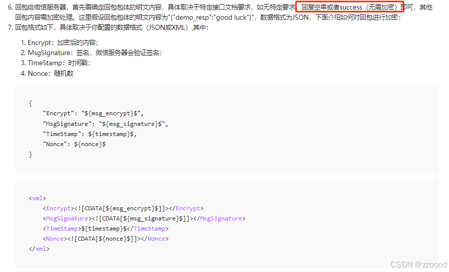 如果按照指引代码里直接回包写 return 'success';或者空字符串的话,验签通过也会报以上错误,原因是在配置的时候不能返回 return 'success';而应该是echo $_GET["echostr"];