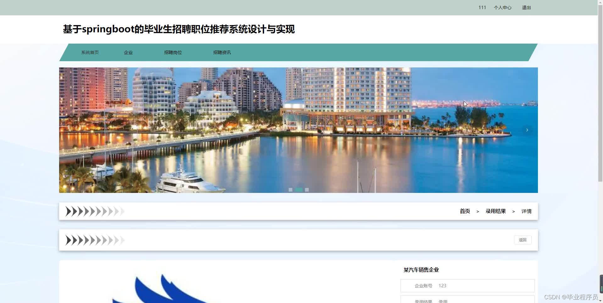 2025最新-计算机毕业设计java基于springboot的毕业生招聘职位推荐系统 本系统设计时,确定详细功能,这些功能主要通过需求阶段的调研分析得来的,具体功能模块如下图,如图4-2所示。图4-2 毕业生招聘职位推荐系统功能结构设计用户注册和登录:学生注册:允许学生创建账户,并提供必要的个人信息企业注册:允许企业创建账户,并提供企业信息和联系方式个人信息管理:学生信息管理:学生可以填写和更新个人信息,包括基本信息、在校期间成绩、专业排名、技能、兴趣爱好、项目经验、实习经历、获奖情况等。