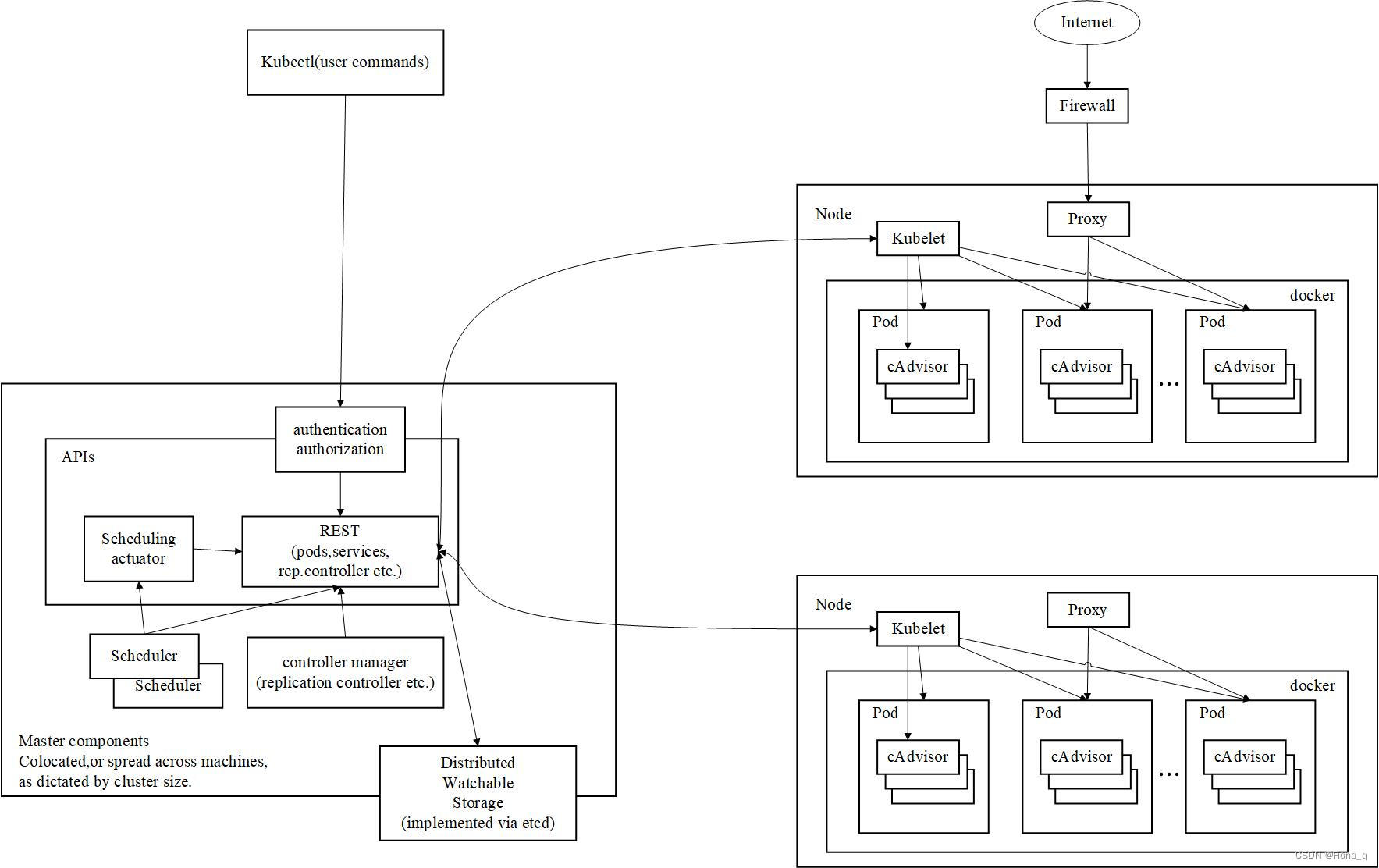 master及node的组件具体包括以下部分: