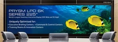 溥美公司(Prysm Inc.)推出全球最大的无缝交互式显示屏 -- 225英寸溥美激光荧光体显示(LPD) 6K系列,宽度达6米,高度则达1.5米。溥美LPD 6K系列是大幅面交互式显示屏,无接缝、无边框的显示器可以提供一览无遗的全画幅图像。该显示屏能够带来平滑的触摸交互,并在任何距离/角度上进行观看,不会产生用眼疲劳。最新的交互式LPD屏幕极具节能性、防碎性和灵活性,具备支持运输的滚动特性。前屏采用进行专门涂装的聚碳酸酯层,能够被卷成一个圆筒,方便运输。溥美LPD 6K系列能够在安装时,借助标准门和客运电梯进行运输。