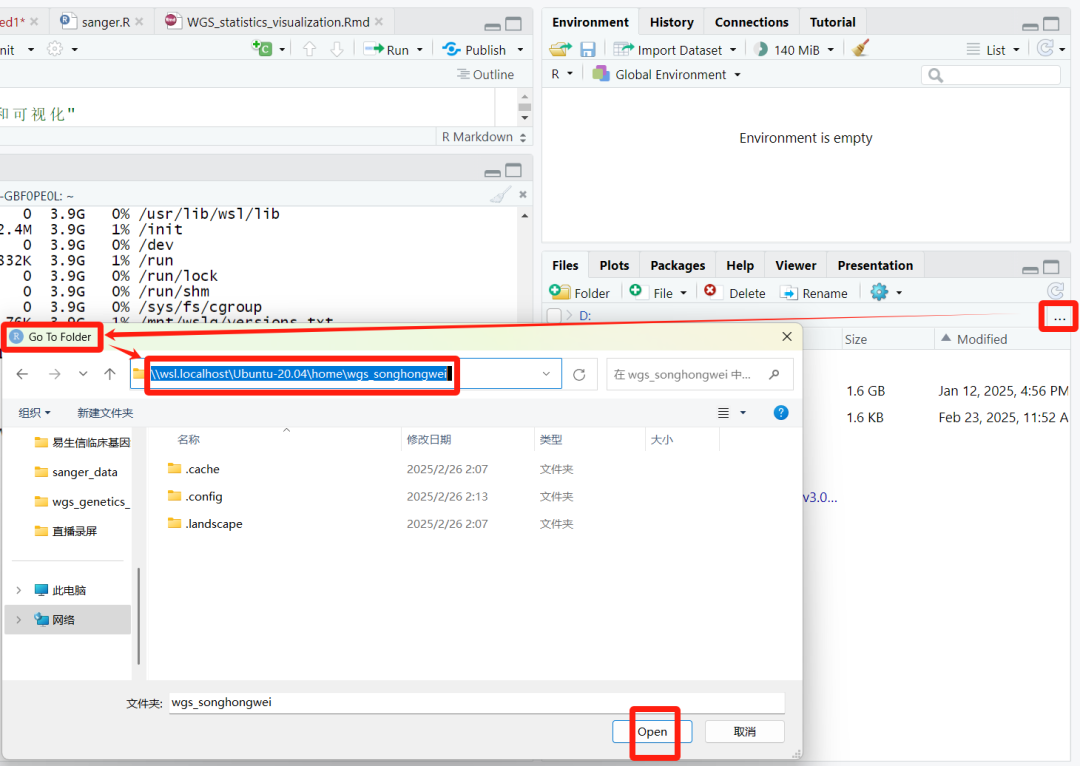 RStudio访问Ubuntu文件:\\wsl.localhost\Ubuntu-20.04\home\用户名