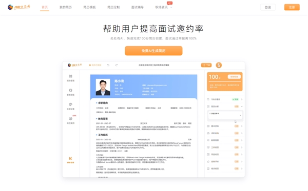 • 应届生/转行/零经验/快速创建简历:选「100分简历」(性价比高+专业指导+AI强);