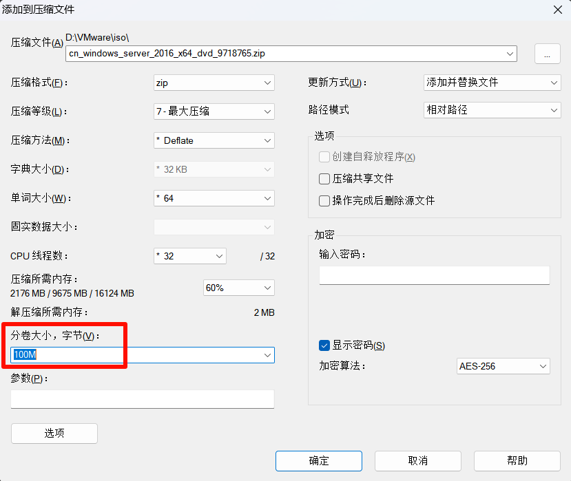 - 使用压缩软件360压缩、7-zip等均可分片,选择指定分片大小即可