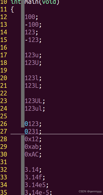 常量是程序运行中值不发生改变的量。以下是常用的常量,有整形常量默认为:signed int