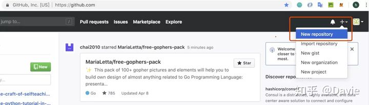 可以通过创建新的仓库来进行代码仓库的创建,方便我们后续使用该仓库来进行代码管理。如下图: