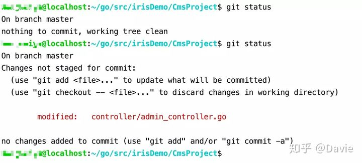 红色表示自上次提交以后,有过内容修改的文件。该命令在我们开发过程中使用非常频繁。