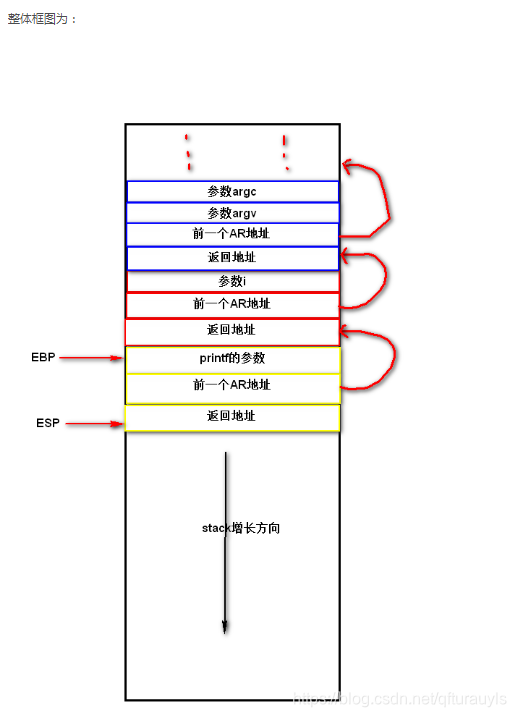 每当遇到一次函数调用的语句,C编译器都会产生出汇编代码来在堆栈上分配这个AR。分析下面代码: