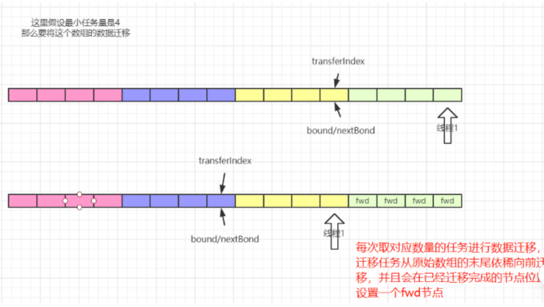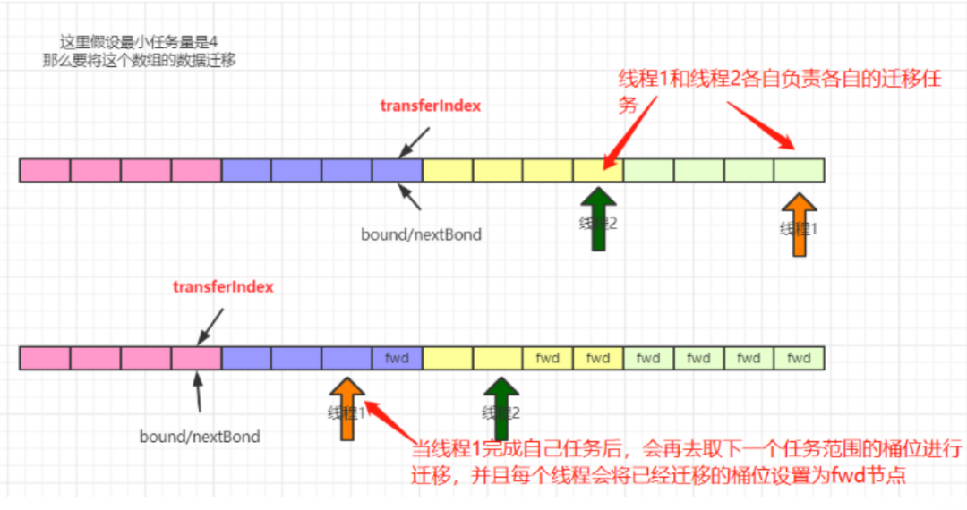 ①. 当添加元素时,发现添加的元素对用的桶位为fwd节点,就会先去协助扩容,然后再添加元素;