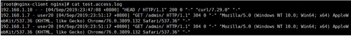 10.0.105.207 - - [01/Jul/2019:10:44:36 +0800] "GET / HTTP/1.1" 304 0 "-" "Mozilla/5.0 (Windows NT 10.0; Win64; x64) AppleWebKit/537.36 (KHTML, like Gecko) Chrome/75.0.3770.100 Safari/537.36" "-"