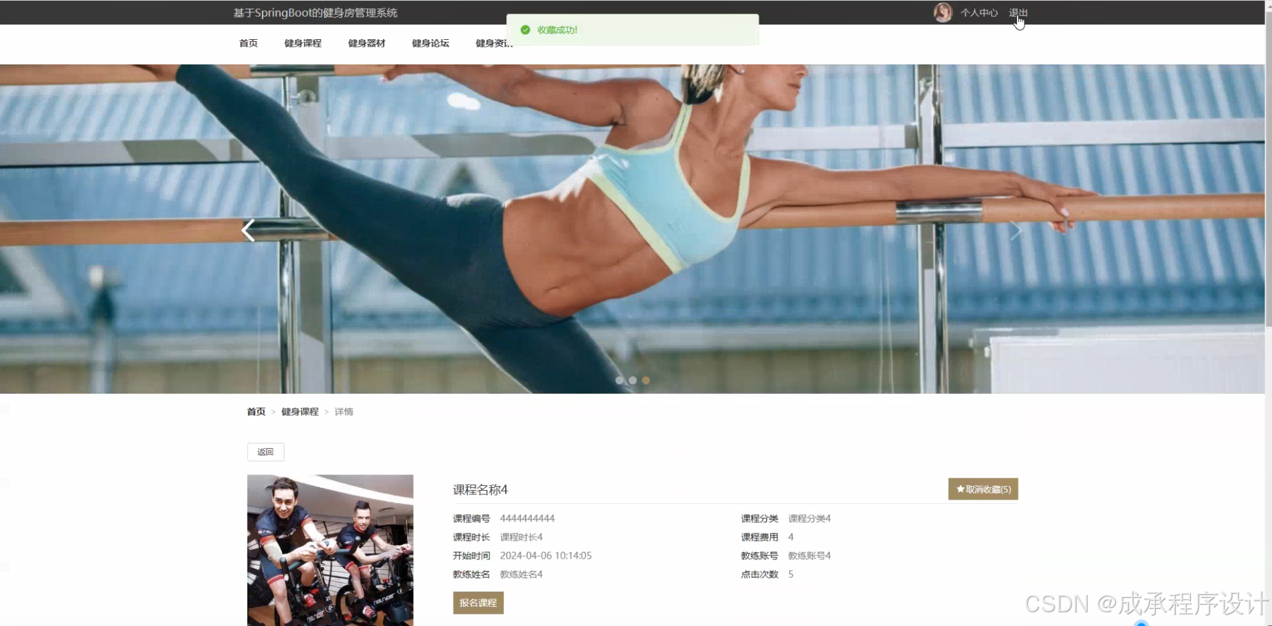- 课程信息的管理,包括课程的时间安排、教练安排、课程内容介绍等。