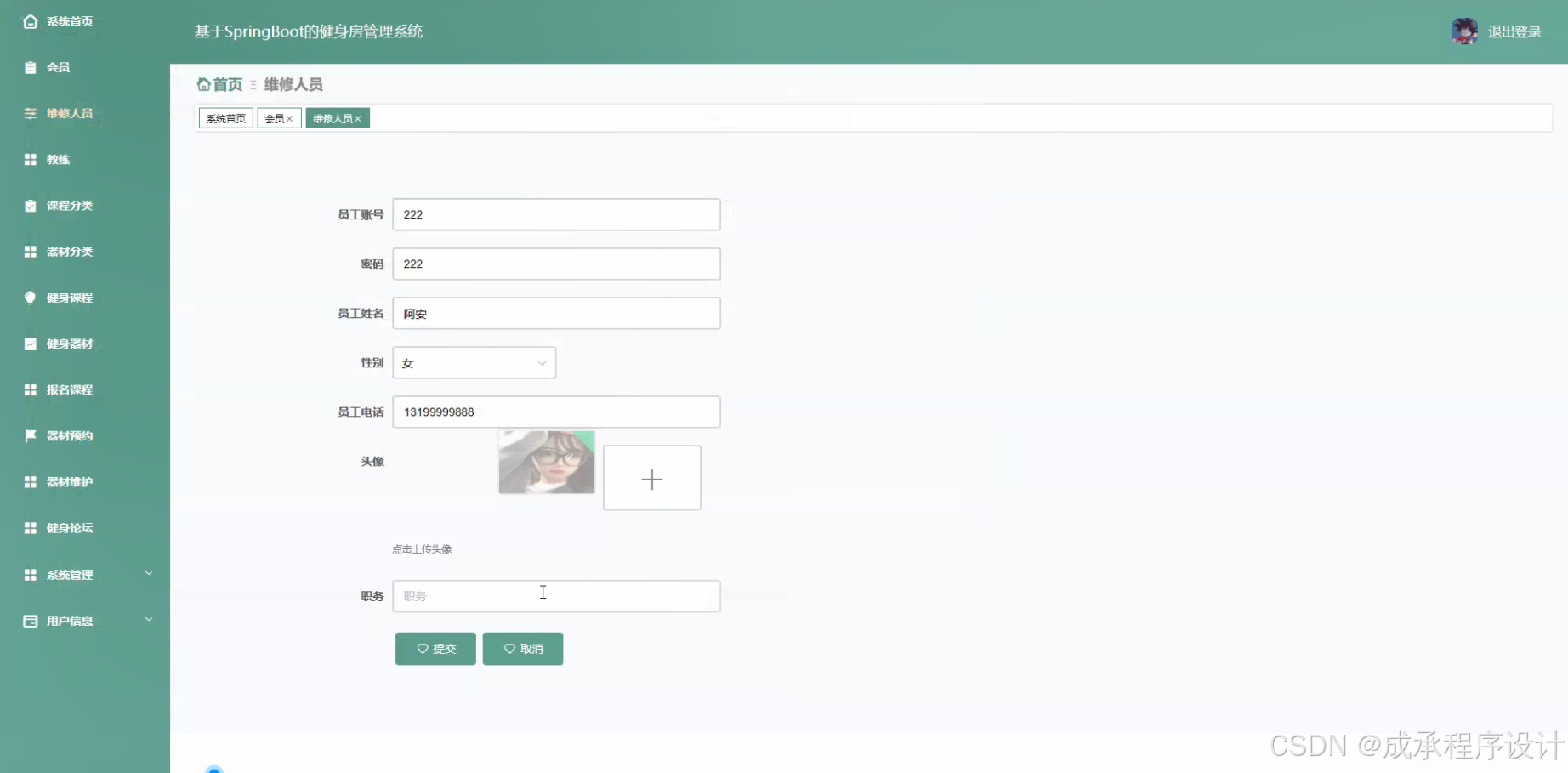 - 教练基本信息的管理,如教练的资质、擅长课程等。