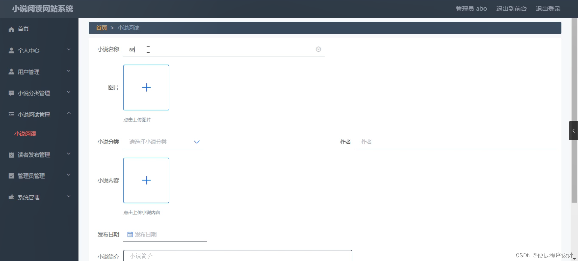 本文探讨了随着数字技术发展的小说阅读网站系统,研究其用户管理、小说分类、阅读体验和读者发布等功能,以揭示网络文学传播的特点,提出优化建议,以提升用户体验和平台竞争力。使用了SSM框架、Vue.js等技术进行系统分析和设计。