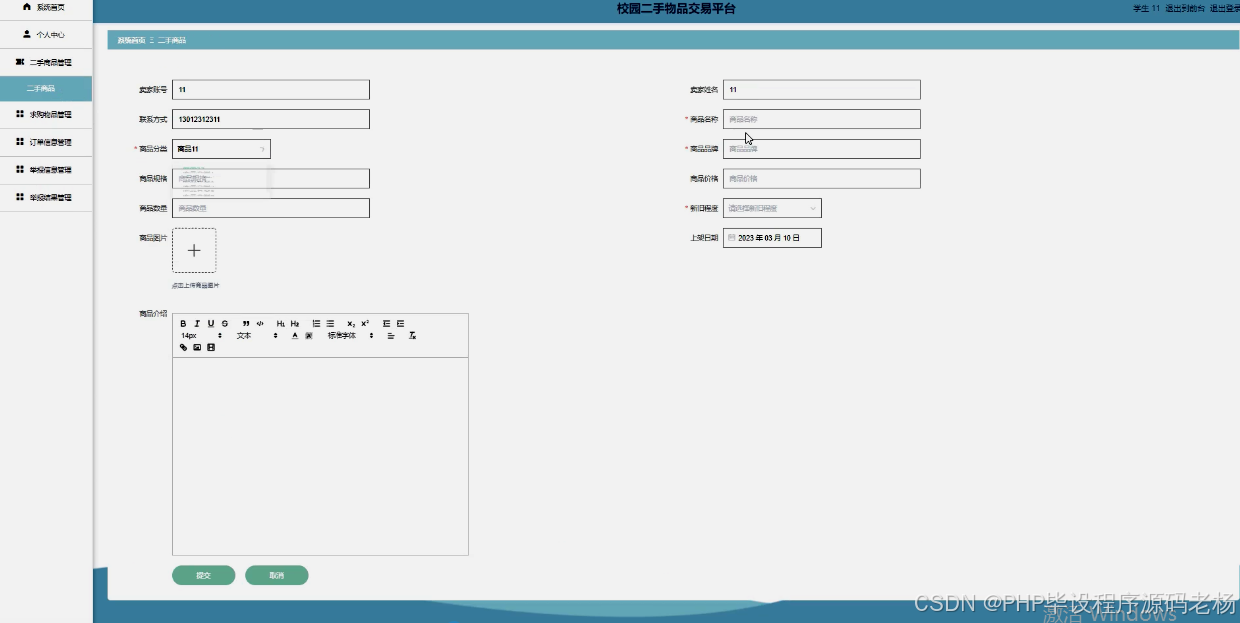 本研究旨在通过开发一个功能完善的校园二手物品交易平台,解决当前校园二手物品交易中存在的信息不对称、交易效率低下等问题。平台将涵盖学生信息管理、商品分类展示、二手商品发布与搜索、举报信息处理、求购物品发布、举报结果反馈以及订单信息管理等功能,以满足学生在二手物品交易过程中的多样化需求。通过该平台的建设和推广,期望能够推动校园二手物品交易的规范化、便捷化和安全化。