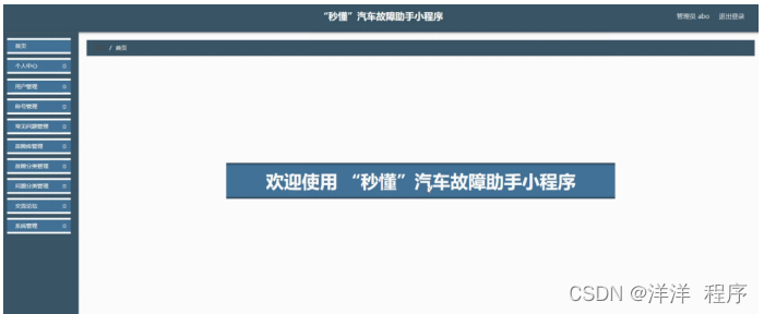管理员登录系统后,可以对首页、个人中心、用户管理、称号管理、常见问题管理、故障库管理、故障分类管理、问题分类管理、交流论坛、系统管理等功能进行相应操作,如图5-8所示。