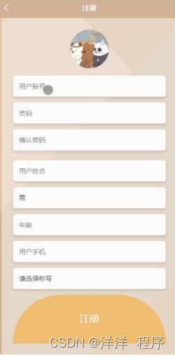 用户注册,在注册页面通过填写用户账号、密码、确认密码、用户姓名、性别、年龄、用户手机、称号等详细信息进行注册操作;如图5-2所示。