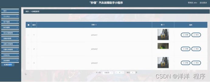 系统管理,在轮播图管理页面可以对索引、名称、值等内容进行详情和修改操作,如图5-14所示。