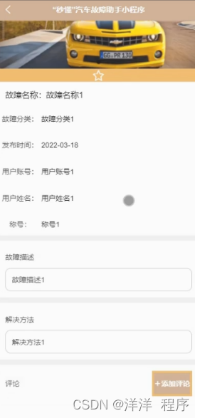 故障库,在故障库页面可以查看封面图片、故障名称、故障分类、发布时间、用户账号、用户姓名、称号、故障描述、解决方法等详细信息;并进行评论和收藏操作;如图5-4所示。
