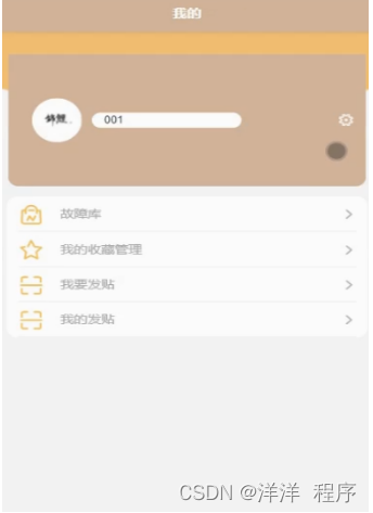 用户功能,用户在我的页面可以对故障库、我的收藏管理、我要发贴、我的发贴等详细信息进行操作,如图5-5所示。