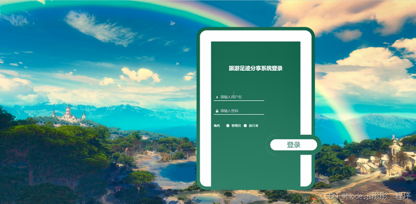 后台登录,管理员和旅行者进入系统前在登录页面根据要求填写用户名和密码,选择角色等信息,点击登录进行登录操作,如图5-4所示。