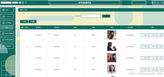 用户管理:在用户管理页面可以查看用户账号、用户姓名、性别、年龄、头像、用户手机等信息,根据需要进行详情、修改、删除等操作,如图5-4所示: