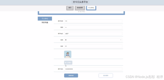 个人中心:用户可以在个人中心修改个人信息,包括账号、密码、头像等,并查看收藏的新闻。