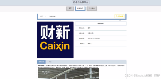 用户登录到仿今日头条平台前台,可以查看首页、新闻信息、个人中心等功能进行详细的操作,如图5-8所示: