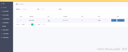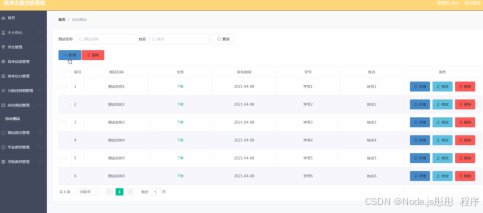 管理员点击综合测试管理。在综合测试页面输入测试名称、姓名进行查询、新增或删除综合测试列表,并根据需要对综合测试详情信息进行详情、修改或删除操作;如图5-7所示:
