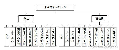系统架构图属于系统设计阶段,系统架构图只是这个阶段一个产物,系统的总体架构决定了整个系统的模式,是系统的基础。高考志愿分析系统的整体结构设计如图4-2所示。