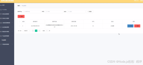 管理员点击专业推荐管理。在专业推荐页面输入推荐专业、学号和姓名进行查询或删除专业推荐列表,并根据需要对专业推荐详情信息进行详情或删除操作;如图5-9所示: