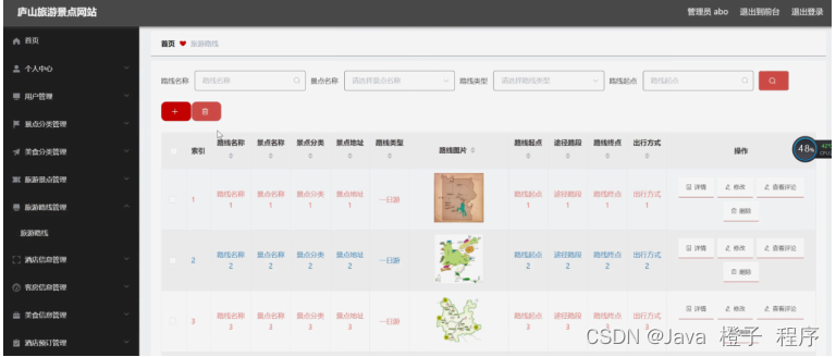 图5-12旅游路线管理界面图