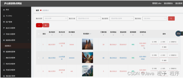 图5-11旅游景点管理界面图