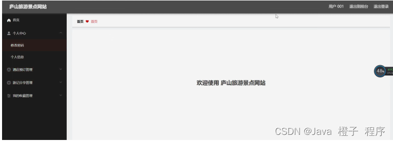 用户登录进入网站后台可以对首页、个人中心、酒店预订管理、游记分享管理、我的收藏管理等功能进行相应操作,如图5-18所示。