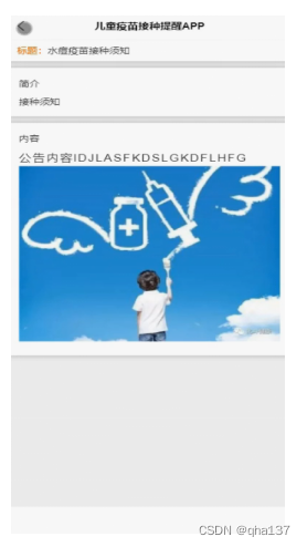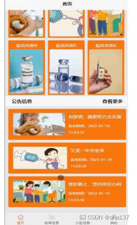 儿童疫苗接种提醒app,在app首页可以查看首页、疫苗信息、公告信息、我的等内容进行详细操作,如图5-3所示。
