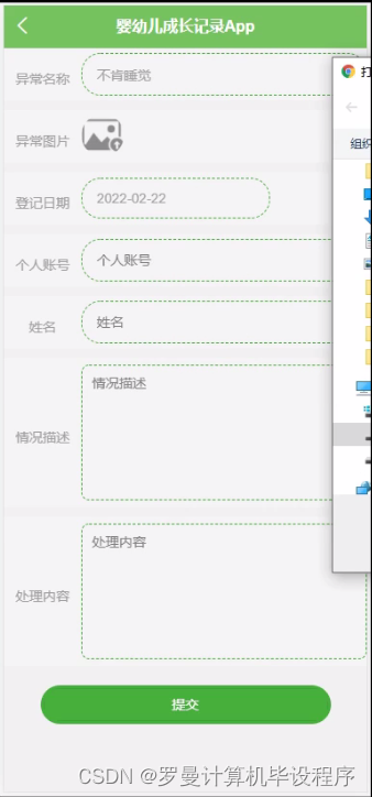 本毕业设计题目旨在开发一款名为“7ykf5”的婴幼儿成长记录App,采用前端技术html+css+javascript+vue,后端技术java+ssm,数据库mysql5.7,开发工具eclipse或idea,tomcat7.0,jdk1.8,maven3.3.9。该App将帮助家长记录婴幼儿的成长过程,包括身高、体重、头围等数据,以及生活中的点点滴滴,如照片、视频等。同时,该App还将提供育儿知识、疫苗接种提醒等功能,全方位满足家长的需求。