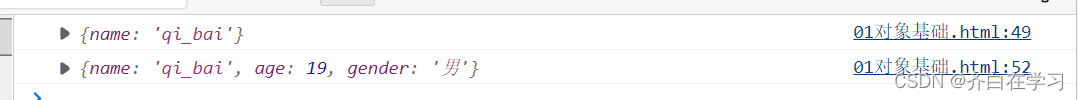 我们设置三个变量,他们三个都是只能表示一个独立的数据,但是不能索引到对应的一个人,所以为了解决这个问题,我们引入对象概念,对象是JS中一种复合数据类型,它相当于一个复杂容器,在对象中能够存储不同的数据类型,比如让上述3个变量都存储至名为Person的对象中,让这个对象表示一个名字叫qi_bai,性别男,年龄19的人。这就解决了上述问题。