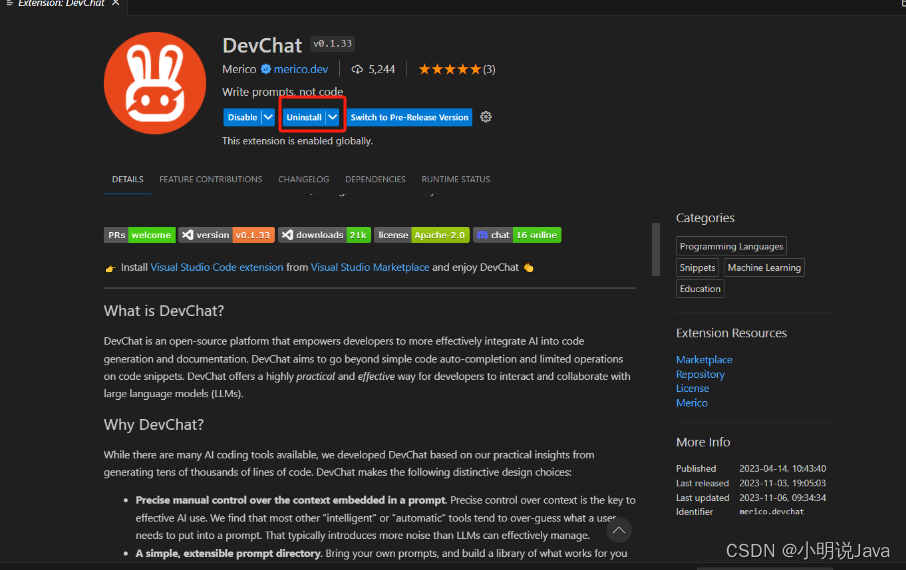 前提条件,使用evChat,需要 Python 3 环境(可参考https://realpython.com/installing-python安装),这个很简单,懂python都知道,直接下载安装就行,接下来讲解如何在vscode中安DevChat插件。