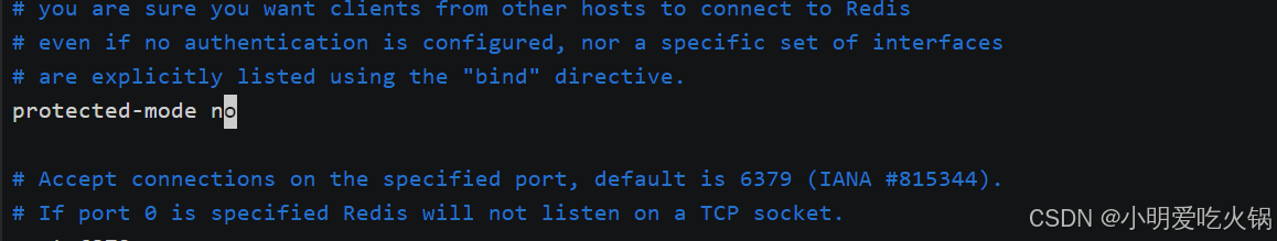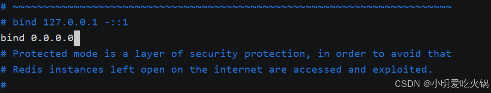 在实际项目开发中,要允许 Redis 从外部访问,实际项目相对Redis是客户端,设置Redis外部访问的原因主要是为了允许远程客户端连接到Redis服务器,这样才能在工程代码中操作Redis实例,同样进入 Redis 的配置文件 redis.conf。这里需要修改两个配置: