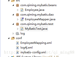 ,因为后期开发都是使用mappers标签用package标签自动扫描首页接口: <mappers><package name="com.qiming.mybatis.dao"/></mappers>,在conf与src的同名包是自动封装成同一个包。