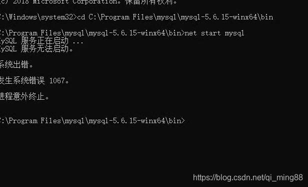 启动MySQL服务>net start mysql,停止可以使用net stop mysql,当然也可以在服务里面进行操作