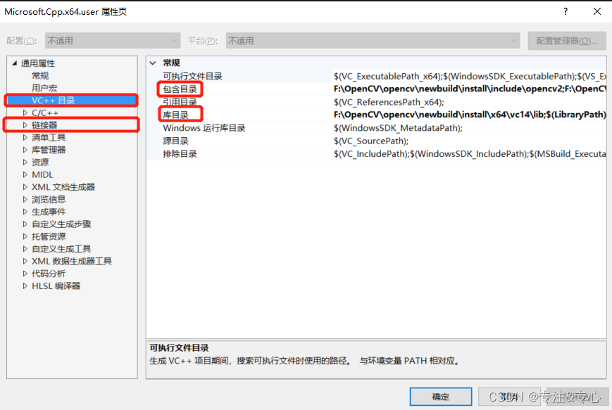1) 包含目录:...\opencv\build\include 和 ...\opencv\build\include\opencv2